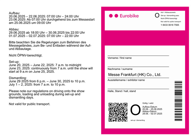 2、如邊檢要查驗(yàn),可如實(shí)告知是赴法蘭克福參加EUROBIKE 2025,并出示展商證/觀眾票、展會邀請函等能證明出境目的相關(guān)材料。