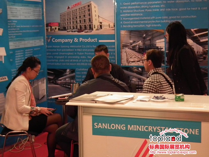 2014年新天國際會展為Expostone中國地區大的組團單位,位于中國展區的較佳位置。中國展商展出的展品主要包括板材、墓碑、工具、機械等,到訪的采購商除了那些熟悉的面孔,也增加了不少新買家。